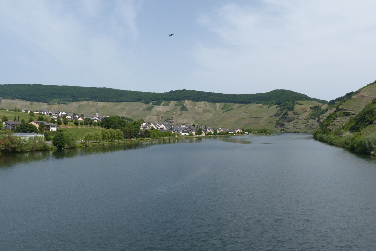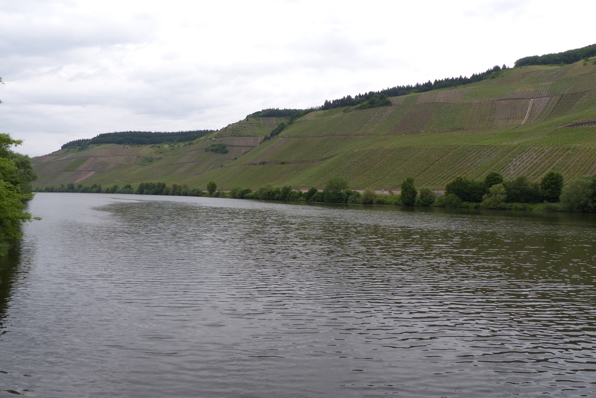 Weiter die Mosel aufwärts. Die Hänge werden (meist auf einer Seite) flacher und es hat weniger Zahnradbahnen.